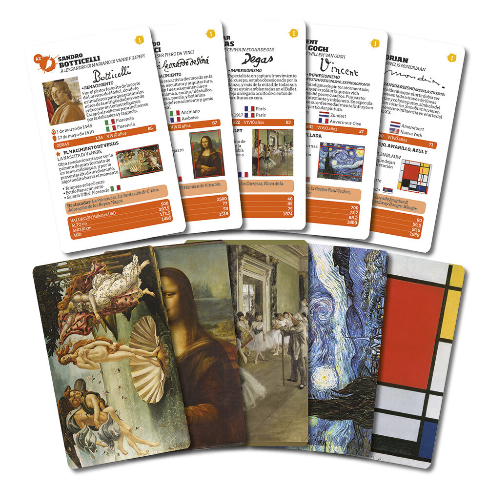 Juego enciclopédico que toma como tema la Pintura y pintores destacados. Se basa en un mini libro que contiene 32 fichas infográficas muy completas que brindan un contexto comprensivo para ir asimilando conocimiento de forma divertida mediante distintos modos de juego.
